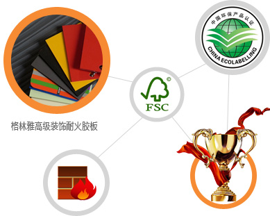• 格林雅耐火板通过SGS、国家防火安全认证、环保甲醛释放量认证,您的放心之选